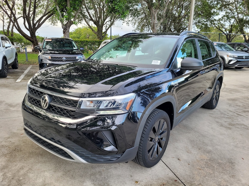 CARFAX One-Owner. Certified. Deep Black 2022 Volkswagen Taos 1.5T S 1.5L I4 Turbocharged DOHC 16V LEV3-SULEV30 158hp 8-Speed Automatic with Tiptronic FWD 17" Silver Alloy Wheels, 3.23 Axle Ratio, 4-Wheel Disc Brakes, 6 Speakers, ABS brakes, Air Conditioning, Alloy wheels, AM/FM radio, Brake assist, Bumpers: body-color, Cloth Seating Surfaces, Compass, Delay-off headlights, Driver door bin, Driver vanity mirror, Dual front impact airbags, Dual front side impact airbags, Electronic Stability Control, Emergency communication system: Car-Net, Exterior Parking Camera Rear, Front anti-roll bar, Front Bucket Seats, Front Center Armrest, Front reading lights, Front Strut Rear Torsion Beam Suspension, Front wheel independent suspension, Fully automatic headlights, Illuminated entry, Low tire pressure warning, Occupant sensing airbag, Outside temperature display, Overhead airbag, Overhead console, Panic alarm, Passenger door bin, Passenger vanity mirror, Power door mirrors, Power steering, Power windows, Radio data system, Radio: Composition Color AM/FM, Rear anti-roll bar, Rear seat center armrest, Rear window defroster, Rear window wiper, Remote keyless entry, Roof rack: rails only, Speed control, Speed-sensing steering, Split folding rear seat, Spoiler, Steering wheel mounted audio controls, Tachometer, Telescoping steering wheel, Tilt steering wheel, Traction control, Trip computer, and Variably intermittent wipers.