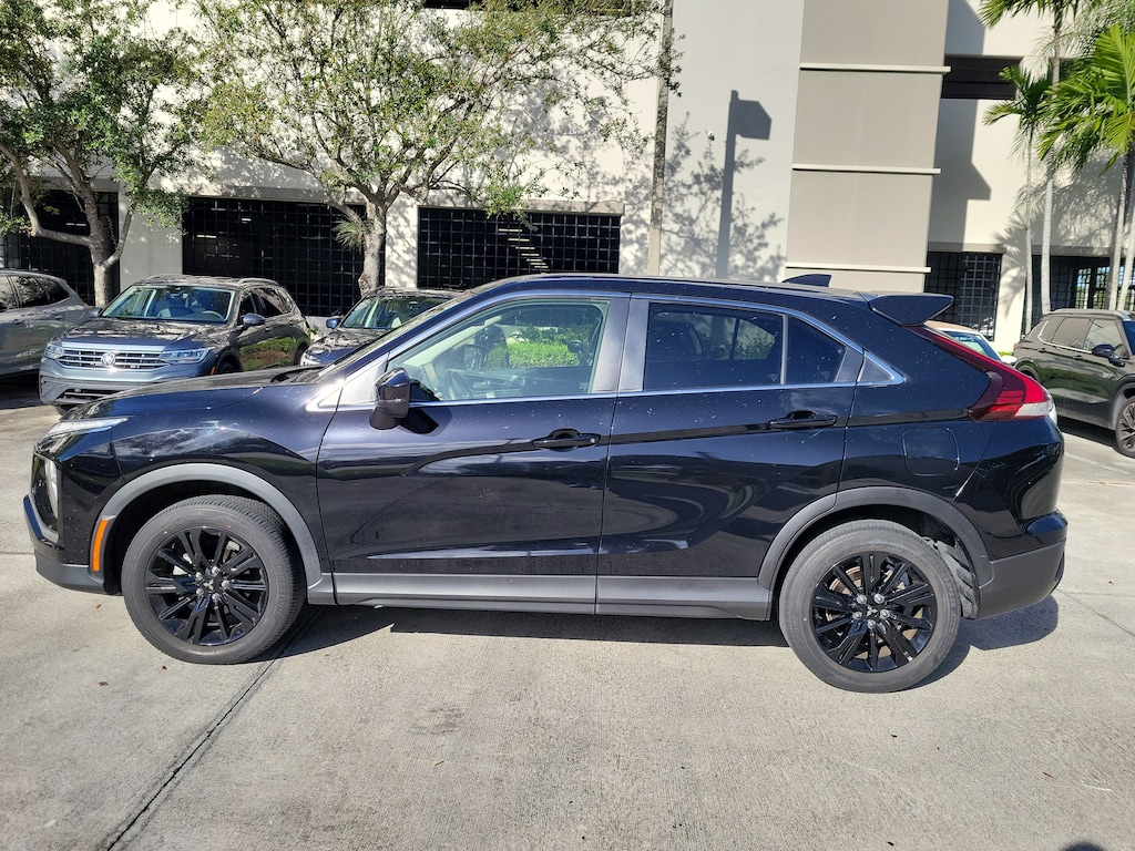 CARFAX One-Owner. Labrador Black 2023 Mitsubishi Eclipse Cross LE 1.5L I4 DI Turbocharged DOHC 16V LEV3-ULEV70 152hp CVT 4WD ABS brakes, Alloy wheels, Electronic Stability Control, Heated door mirrors, Heated Front Bucket Seats, Heated front seats, Illuminated entry, Low tire pressure warning, Remote keyless entry, Traction control, 4 Speakers, 4-Wheel Disc Brakes, 6.39 Axle Ratio, Air Conditioning, AM/FM radio: SiriusXM, Android Auto & Apple CarPlay, Auto High-beam Headlights, Automatic temperature control, Brake assist, Bumpers: body-color, Cloth Fabric Seating Surfaces, Driver door bin, Driver vanity mirror, Dual front impact airbags, Dual front side impact airbags, Exterior Parking Camera Rear, Four wheel independent suspension, Front anti-roll bar, Front Bucket Seats, Front Center Armrest, Front fog lights, Front reading lights, Knee airbag, Occupant sensing airbag, Outside temperature display, Overhead airbag, Overhead console, Panic alarm, Passenger door bin, Passenger vanity mirror, Power door mirrors, Power steering, Power windows, Radio data system, Radio: AM/FM 8.0" Smartphone-Link Display Audio, Rear anti-roll bar, Rear seat center armrest, Rear window defroster, Rear window wiper, Security system, Speed control, Speed-sensing steering, Split folding rear seat, Spoiler, Steering wheel mounted audio controls, Tachometer, Telescoping steering wheel, Tilt steering wheel, Trip computer, Turn signal indicator mirrors, Variably intermittent wipers, and Wheels: 18" Black Painted Alloy.