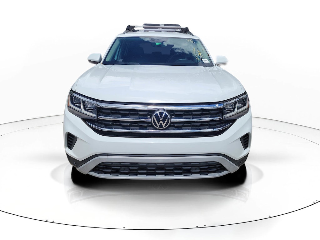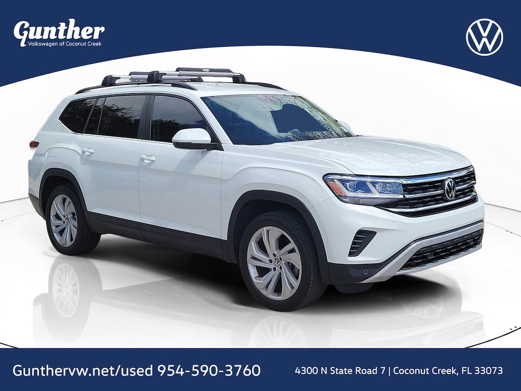 CARFAX One-Owner. Pure White 2022 Volkswagen Atlas 3.6L V6 SE w/Technology 3.6L VR6 8-Speed Automatic with Tiptronic FWD 3.60 Axle Ratio, 3rd row seats: split-bench, 4-Wheel Disc Brakes, 6 Speakers, ABS brakes, Air Conditioning, Alloy wheels, AM/FM radio: SiriusXM with 360L, Auto-dimming Rear-View mirror, Automatic temperature control, Brake assist, Bumpers: body-color, Compass, Delay-off headlights, Driver door bin, Driver vanity mirror, Dual front impact airbags, Dual front side impact airbags, Electronic Stability Control, Emergency communication system, Exterior Parking Camera Rear, Four wheel independent suspension, Front anti-roll bar, Front Bucket Seats, Front Center Armrest, Front dual zone A/C, Front fog lights, Front reading lights, Fully automatic headlights, Heated Comfort Front Bucket Seats, Heated door mirrors, Heated front seats, Illuminated entry, Leather Shift Knob, Low tire pressure warning, Occupant sensing airbag, Outside temperature display, Overhead airbag, Overhead console, Panic alarm, Passenger door bin, Passenger vanity mirror, Perforated V-Tex Leatherette Seating Surfaces, Power door mirrors, Power driver seat, Power Liftgate, Power steering, Power windows, Radio data system, Radio: MIB3 Composition Media w/8" Touchscreen, Rain sensing wipers, Rear air conditioning, Rear anti-roll bar, Rear reading lights, Rear seat center armrest, Rear window defroster, Rear window wiper, Remote keyless entry, Roof rack: rails only, Security system, Speed control, Speed-sensing steering, Split folding rear seat, Spoiler, Standard Suspension, Steering wheel mounted audio controls, Tachometer, Telescoping steering wheel, Tilt steering wheel, Traction control, Trip computer, Turn signal indicator mirrors, Variably intermittent wipers, and Wheels: 20" x 8J 5-Spoke Silver Painted Alloy.