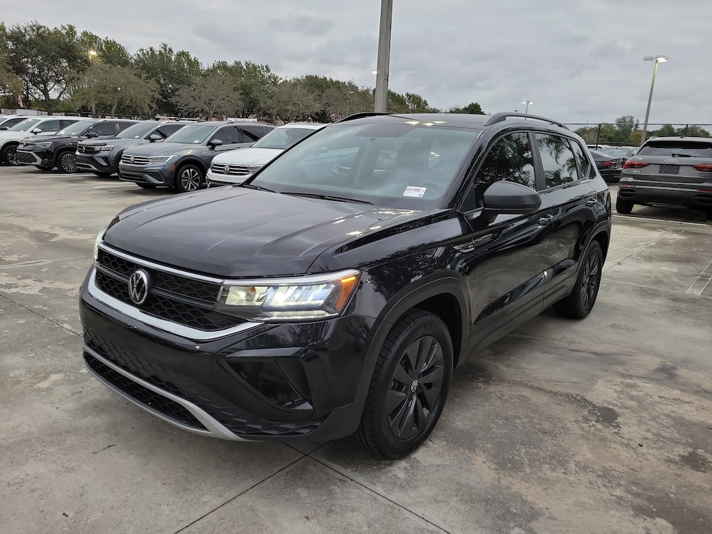 CARFAX One-Owner. Deep Black 2022 Volkswagen Taos 1.5T S 1.5L I4 Turbocharged DOHC 16V LEV3-SULEV30 158hp 7-Speed DSG Automatic with Tiptronic AWD 17" Silver Alloy Wheels, 4-Wheel Disc Brakes, 5.20 Axle Ratio, 6 Speakers, ABS brakes, Air Conditioning, Alloy wheels, AM/FM radio, Brake assist, Bumpers: body-color, Cloth Seating Surfaces, Compass, Delay-off headlights, Driver door bin, Driver vanity mirror, Dual front impact airbags, Dual front side impact airbags, Electronic Stability Control, Emergency communication system: Car-Net, Exterior Parking Camera Rear, First Aid Kit, Four wheel independent suspension, Front anti-roll bar, Front Bucket Seats, Front Center Armrest, Front reading lights, Front Strut Rear Multi-Link Suspension, Fully automatic headlights, Heated door mirrors, Heated Front Bucket Seats, Heated front seats, Illuminated entry, Low tire pressure warning, Occupant sensing airbag, Outside temperature display, Overhead airbag, Overhead console, Panic alarm, Passenger door bin, Passenger vanity mirror, Power door mirrors, Power steering, Power windows, Radio data system, Radio: Composition Color AM/FM, Rear anti-roll bar, Rear seat center armrest, Rear window defroster, Rear window wiper, Remote keyless entry, Roadside Assistance Kit, Roof rack: rails only, Rubber Mats Kit (SNM) (DISC), Speed control, Speed-sensing steering, Split folding rear seat, Spoiler, Steering wheel mounted audio controls, Tachometer, Telescoping steering wheel, Tilt steering wheel, Traction control, Trip computer, and Variably intermittent wipers.