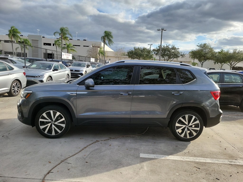 CARFAX One-Owner. Platinum Gray Metallic 2022 Volkswagen Taos 1.5T SE 1.5L I4 Turbocharged DOHC 16V LEV3-SULEV30 158hp 8-Speed Automatic with Tiptronic FWD 3.23 Axle Ratio, 4-Wheel Disc Brakes, 6 Speakers, ABS brakes, Air Conditioning, Alloy wheels, AM/FM radio: SiriusXM with 360L, Brake assist, Bumpers: body-color, Cargo Area Retractable Privacy Cover, CloudTex & Cloth Seating Surfaces, Compass, Delay-off headlights, Driver door bin, Driver vanity mirror, Dual front impact airbags, Dual front side impact airbags, Electronic Stability Control, Emergency communication system: Car-Net, Exterior Parking Camera Rear, First Aid Kit, Front anti-roll bar, Front Assist, Front Bucket Seats, Front Center Armrest, Front reading lights, Front Strut Rear Torsion Beam Suspension, Front wheel independent suspension, Fully automatic headlights, Heated door mirrors, Heated Front Comfort Seats, Heated front seats, Illuminated entry, Leather Shift Knob, Low tire pressure warning, Occupant sensing airbag, Outside temperature display, Overhead airbag, Overhead console, Panic alarm, Passenger door bin, Passenger vanity mirror, Power door mirrors, Power driver seat, Power steering, Power windows, Radio data system, Radio: MIB3 Composition Media AM/FM/HD, Rear anti-roll bar, Rear seat center armrest, Rear Traffic Alert, Rear window defroster, Rear window wiper, Remote keyless entry, Roadside Assistance Kit, Roof rack: rails only, Rubber Mats Kit (SNM), Security system, Speed control, Speed-sensing steering, Split folding rear seat, Spoiler, Steering wheel mounted audio controls, Tachometer, Telescoping steering wheel, Tilt steering wheel, Traction control, Trip computer, Variably intermittent wipers, and Wheels: 18" 2-Tone Machined Alloy.