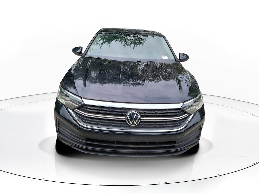 CARFAX One-Owner. Deep Black 2023 Volkswagen Jetta 1.5T S 1.5L I-4 DI DOHC Turbocharged 8-Speed Automatic with Tiptronic FWD Convenience Package (Auto-Dimming Interior Rear-View Mirror, Leather-Wrapped Steering Wheel & Shifter, and Rain-Sensing Automatic Front Wipers), IQ.DRIVE Package (Active Blind Spot Monitor, Adaptive Cruise Control (ACC) Stop & Go, Emergency Assist, Front Assist w/Autonomous Emergency Braking, Lane Assist (Lane Keeping System), Rear Traffic Alert, and Travel Assist (Semi-Automated Driving Assistance)), 4 Speakers, 4-Wheel Disc Brakes, ABS brakes, Air Conditioning, Alloy wheels, AM/FM radio, Brake assist, Bumpers: body-color, Cloth Seat Trim, Delay-off headlights, Driver door bin, Driver vanity mirror, Dual front impact airbags, Dual front side impact airbags, Electronic Stability Control, Emergency communication system: VW Car-Net Safe & Secure 5-year, Exterior Parking Camera Rear, Front anti-roll bar, Front Bucket Seats, Front Center Armrest, Front Comfort Seats, Front wheel independent suspension, Fully automatic headlights, Heated door mirrors, Heavy Duty Trunk Liner w/VW CarGo Blocks, Illuminated entry, Low tire pressure warning, Occupant sensing airbag, Outside temperature display, Overhead airbag, Overhead console, Panic alarm, Passenger door bin, Passenger vanity mirror, Power door mirrors, Power steering, Power windows, Radio data system, Radio: MIB3 Composition Color w/6.5" Touchscreen, Rear anti-roll bar, Rear reading lights, Rear window defroster, Remote keyless entry, Rubber Monster Mats Kit (Set of 4), Speed control, Speed-sensing steering, Split folding rear seat, Steering wheel mounted audio controls, Tachometer, Telescoping steering wheel, Tilt steering wheel, Traction control, Trip computer, Variably intermittent wipers, and Wheels: 16" 2-Tone Machined Alloy.