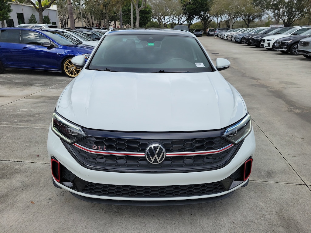 Recent Arrival! CARFAX One-Owner. Pure White 2023 Volkswagen Jetta GLI 2.0T Autobahn 2.0L TSI DOHC 7-Speed DSG Automatic with Tiptronic FWD 4-Wheel Disc Brakes, 9 Speakers, ABS brakes, Active Blind Spot Monitor, Adaptive suspension, Air Conditioning, Alloy wheels, AM/FM radio: SiriusXM with 360L, Auto High-beam Headlights, Auto-dimming Rear-View mirror, Auto-Dimming Rearview Mirror w/Electronic Compass, Automatic temperature control, Brake assist, Bumpers: body-color, Credit - Ventilated Front Seats Removed, Delay-off headlights, Driver door bin, Driver vanity mirror, Dual front impact airbags, Dual front side impact airbags, Electronic Stability Control, Emergency communication system: VW Car-Net Safe & Secure 5-year, Exterior Parking Camera Rear, First Aid Kit, Four wheel independent suspension, Front anti-roll bar, Front Bucket Seats, Front Center Armrest, Front dual zone A/C, Front reading lights, Fully automatic headlights, Heated door mirrors, Heated front seats, Htd & Actively Ventilated Fr Comfort Sport Seats, Illuminated entry, Leather Shift Knob, Leather steering wheel, Low tire pressure warning, Memory seat, Occupant sensing airbag, Outside temperature display, Overhead airbag, Overhead console, Panic alarm, Passenger door bin, Passenger vanity mirror, Perforated Vienna Leather Seating Surfaces, Power door mirrors, Power driver seat, Power moonroof: Panoramic, Power steering, Power windows, Radio data system, Radio: MIB3 Composition Media w/8" Touchscreen, Rain sensing wipers, Rear anti-roll bar, Rear reading lights, Rear seat center armrest, Rear window defroster, Remote keyless entry, Roadside Assistance Kit, Security system, Speed control, Speed-sensing steering, Split folding rear seat, Sport steering wheel, Steering wheel mounted audio controls, Tachometer, Telescoping steering wheel, Tilt steering wheel, Traction control, Trip computer, Turn signal indicator mirrors, Variably intermittent wipers, Ventilated front seats, and Wheels: 18" Two-Tone Machined Alloy.
