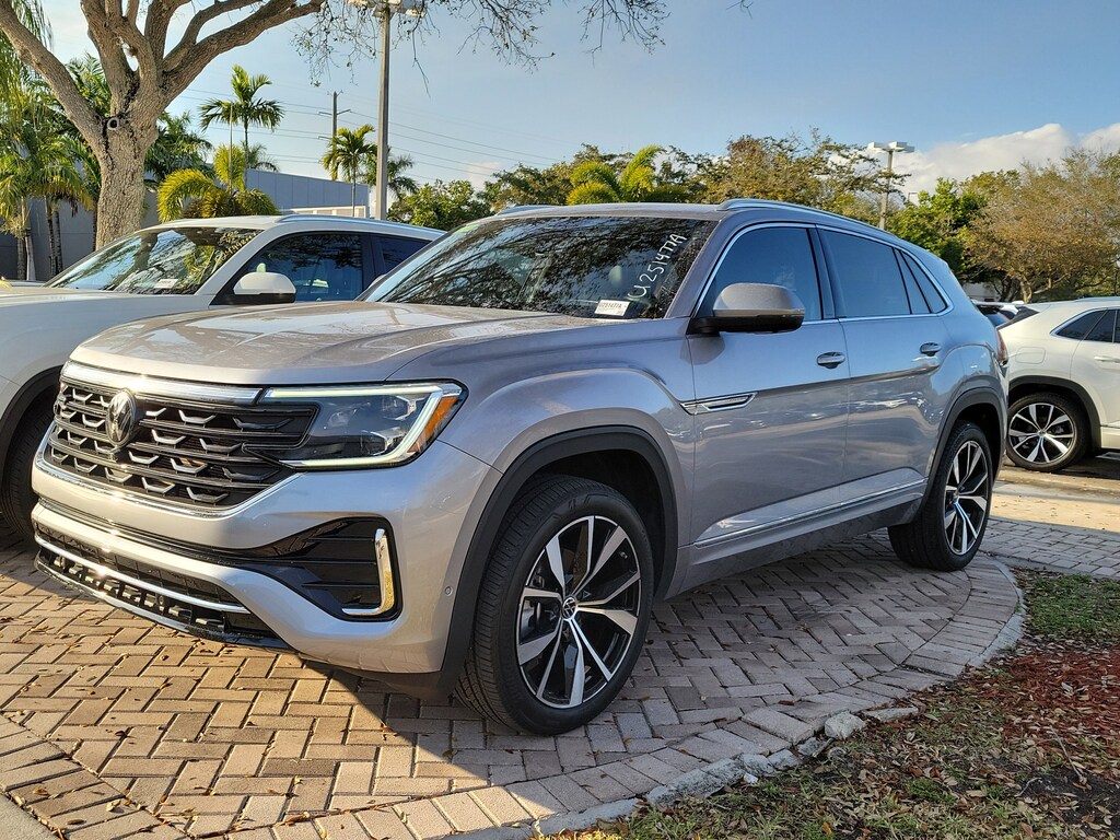 Recent Arrival! CARFAX One-Owner. Silver Mist Metallic 2024 Volkswagen Atlas Cross Sport 2.0T SEL Premium R-Line 2.0L TSI 8-Speed Automatic with Tiptronic AWD 3.60 Axle Ratio, 4-Wheel Disc Brakes, 4-Wheel Independent Suspension, 6 Speakers, ABS brakes, Air Conditioning, Alloy wheels, AM/FM radio: SiriusXM with 360L, Auto High-beam Headlights, Auto-Dimming Rear-View Mirror, Auto-dimming Rear-View mirror, Automatic temperature control, Brake assist, Bumpers: body-color, Compass, Delay-off headlights, Driver door bin, Driver vanity mirror, Dual front impact airbags, Dual front side impact airbags, Electronic Stability Control, Emergency communication system: VW Car-Net Safe & Secure 5-year, Exterior Parking Camera Rear, First Aid Kit, Four wheel independent suspension, Front anti-roll bar, Front Bucket Seats, Front Center Armrest, Front dual zone A/C, Front fog lights, Front reading lights, Fully automatic headlights, harman/kardon® Speakers, Heads-Up Display, Heated & Actively Ventilated Front Seats, Heated door mirrors, Heated front seats, Heated rear seats, Heated steering wheel, Heavy Duty Trunk Liner w/VW CarGo Blocks, Illuminated entry, Leather steering wheel, Low tire pressure warning, Memory seat, Monster Mats Rubber Mats (Set of 4), Navigation System, Occupant sensing airbag, Outside temperature display, Overhead airbag, Overhead console, Panic alarm, Passenger door bin, Passenger vanity mirror, Perforated Vienna Leather Seating Surfaces, Power door mirrors, Power driver seat, Power Liftgate, Power moonroof: Panoramic, Power passenger seat, Power steering, Power windows, Privacy Cover, Radio data system, Radio: MIB3 Discover Media Navigation AM/FM/HD, Rain sensing wipers, Rear anti-roll bar, Rear audio controls, Rear reading lights, Rear seat center armrest, Rear window defroster, Rear window wiper, Remote keyless entry, Roadside Assistance Kit, Rubber Mats Kit, Security system, Speed control, Speed-sensing steering, Split folding rear seat, Spoiler, Sport steering wheel, Steering wheel mounted audio controls, Tachometer, Telescoping steering wheel, Tilt steering wheel, Traction control, Trip computer, Turn signal indicator mirrors, Variably intermittent wipers, Ventilated front seats, and Wheels: 21" 2-Tone Machined Alloy.
