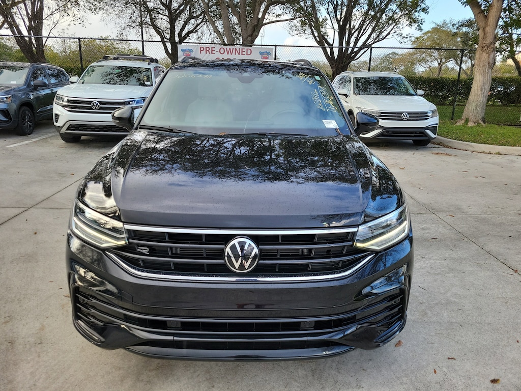 Recent Arrival! CARFAX One-Owner. Deep Black 2024 Volkswagen Tiguan 2.0T SE R-Line Black 2.0L TSI DOHC 8-Speed Automatic with Tiptronic FWD 3.33 Axle Ratio, 3rd row seats: bench, 4-Wheel Disc Brakes, 4-Wheel Independent Suspension, 6 Speakers, ABS brakes, Air Conditioning, Alloy wheels, AM/FM radio: SiriusXM with 360L, Auto-dimming Rear-View mirror, Automatic temperature control, Brake assist, Bumpers: body-color, Compass, Delay-off headlights, Driver door bin, Driver vanity mirror, Dual front impact airbags, Dual front side impact airbags, Electronic Stability Control, Emergency communication system: VW Car-Net Safe & Secure 5-year, Exterior Parking Camera Rear, Four wheel independent suspension, Front anti-roll bar, Front Bucket Seats, Front Center Armrest, Front dual zone A/C, Front reading lights, Fully automatic headlights, Heated door mirrors, Heated Front Seats, Heated front seats, Illuminated entry, Leather Shift Knob, Leather steering wheel, Low tire pressure warning, Occupant sensing airbag, Outside temperature display, Overhead airbag, Overhead console, Panic alarm, Passenger door bin, Passenger vanity mirror, Perforated V-Tex Leatherette Seating Surfaces, Power door mirrors, Power driver seat, Power Liftgate, Power moonroof, Power steering, Power windows, Radio data system, Radio: MIB3 Composition Media AM/FM/HD, Rain sensing wipers, Rear anti-roll bar, Rear reading lights, Rear seat center armrest, Rear window defroster, Rear window wiper, Remote keyless entry, Security system, Speed control, Speed-sensing steering, Split folding rear seat, Spoiler, Sport steering wheel, Steering wheel mounted audio controls, Tachometer, Telescoping steering wheel, Tilt steering wheel, Traction control, Trip computer, Turn signal indicator mirrors, Variably intermittent wipers, and Wheels: 19" Black Painted Twin 5-Spoke Alloy.