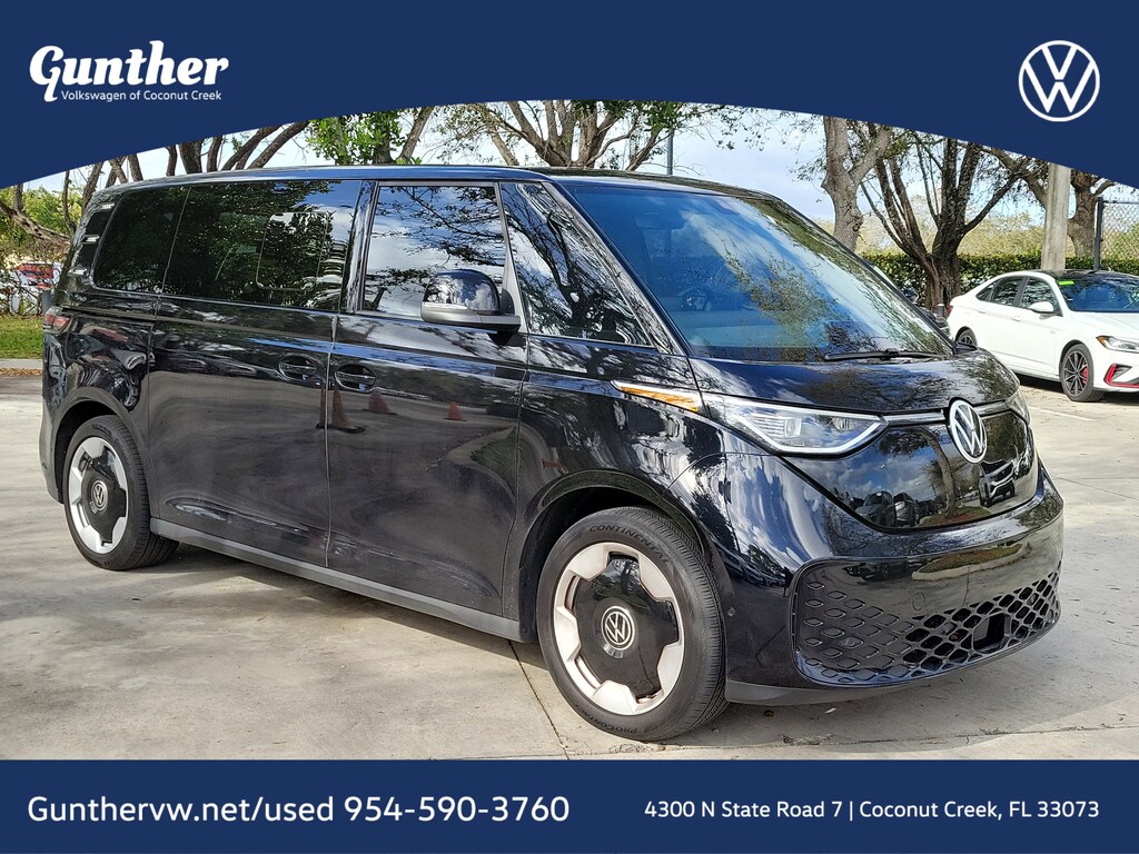 Recent Arrival! CARFAX One-Owner. Deep Black 2025 Volkswagen ID. Buzz Pro S Electric Motor Single-Speed Automatic RWD 3rd row seats: split-bench, 9 Speakers, ABS brakes, Air Conditioning, Alloy wheels, Auto High-beam Headlights, Auto-dimming Rear-View mirror, Automatic temperature control, Brake assist, Bumpers: body-color, Delay-off headlights, Driver door bin, Driver vanity mirror, Driver's Seat Mounted Armrest, Dual front impact airbags, Dual front side impact airbags, Electronic Stability Control, Emergency communication system: VW Car-Net Safe & Secure 5-year, Exterior Parking Camera Rear, Four wheel independent suspension, Front anti-roll bar, Front Bucket Seats, Front dual zone A/C, Front fog lights, Front reading lights, Fully automatic headlights, Heated & Actively Ventilated Front Seats, Heated door mirrors, Heated front seats, Heated rear seats, Heated steering wheel, Illuminated entry, Leather steering wheel, Low tire pressure warning, Memory seat, Navigation System, Occupant sensing airbag, Outside temperature display, Overhead airbag, Panic alarm, Passenger door bin, Passenger seat mounted armrest, Passenger vanity mirror, Perforated V-Tex Leatherette Seating Surfaces, Power door mirrors, Power driver seat, Power Liftgate, Power passenger seat, Power steering, Power windows, Radio data system, Radio: Discover Pro Max w/Touchscreen Navigation, Rain sensing wipers, Rear air conditioning, Rear anti-roll bar, Rear reading lights, Rear window defroster, Rear window wiper, Remote keyless entry, Speed control, Speed-sensing steering, Split folding rear seat, Spoiler, Steering wheel mounted audio controls, TBD Axle Ratio, Telescoping steering wheel, Tilt steering wheel, Traction control, Trip computer, Turn signal indicator mirrors, Variably intermittent wipers, Ventilated front seats, and Wheels: 20" Two-Tone Disc Alloy.
