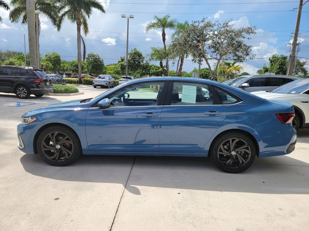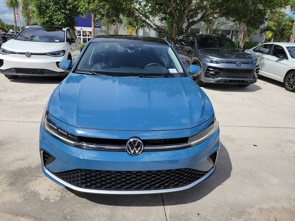 CARFAX One-Owner. Blue 2025 Volkswagen Jetta 1.5T SE 1.5L I-4 DI DOHC Turbocharged 8-Speed Automatic with Tiptronic FWD Black Wheel Package (Wheels: 18" Dark Graphite Painted Alloy), Sunroof Package (Power Tilting & Sliding Sunroof), 4-Wheel Disc Brakes, 6 Speakers, ABS brakes, Active Blind Spot Monitor, Air Conditioning, Alloy wheels, AM/FM radio: SiriusXM with 360L, Auto-dimming Rear-View mirror, Automatic temperature control, Brake assist, Bumperdillo Rear Bumper Protection Plate in Black, Bumpers: body-color, CloudTex & V-Tex Leatherette Seat Trim, Delay-off headlights, Driver door bin, Driver vanity mirror, Dual front impact airbags, Dual front side impact airbags, Electronic Stability Control, Emergency communication system: VW Car-Net Safe & Secure 5-year, Exterior Parking Camera Rear, Front anti-roll bar, Front Bucket Seats, Front Center Armrest, Front dual zone A/C, Front wheel independent suspension, Fully automatic headlights, Heated door mirrors, Heated Front Seats, Heated front seats, Heavy Duty Trunk Liner w/VW CarGo Blocks, Illuminated entry, Leather Shift Knob, Leather steering wheel, Low tire pressure warning, Occupant sensing airbag, Outside temperature display, Overhead airbag, Overhead console, Panic alarm, Passenger door bin, Passenger vanity mirror, Power door mirrors, Power driver seat, Power steering, Power windows, Radio data system, Radio: MIB3 Composition Media w/8" Touchscreen, Rain sensing wipers, Rear anti-roll bar, Rear reading lights, Rear seat center armrest, Rear window defroster, Remote keyless entry, Rubber Monster Mats Kit (Set of 4), Speed control, Speed-sensing steering, Split folding rear seat, Steering wheel mounted audio controls, Tachometer, Telescoping steering wheel, Tilt steering wheel, Traction control, Trip computer, Variably intermittent wipers, and Wheels: 17" Twin 5-Spoke 2-Tone Machined Alloy.