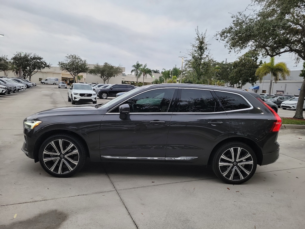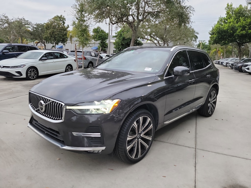 CARFAX One-Owner. Certified. Platinum Gray Metallic 2023 Volvo XC60 B5 Ultimate Bright Theme 2.0L I4 Turbocharged Automatic with Geartronic FWD Protection Package Premier (Bumper Cover, Cargo Tray, First Aid Kit, Rubber Floor Mats, and Wheel Locks), 14 Speakers, 4-Wheel Disc Brakes, ABS brakes, Air Conditioning, Alloy wheels, AM/FM radio: SiriusXM, Anti-whiplash front head restraints, Apple CarPlay, Auto High-beam Headlights, Auto-dimming door mirrors, Auto-dimming Rear-View mirror, Automatic temperature control, Brake assist, Bumpers: body-color, Delay-off headlights, Driver door bin, Driver vanity mirror, Dual front impact airbags, Dual front side impact airbags, Electronic Stability Control, Emergency communication system: Volvo Cars App w/4 Year Subscription, Exterior Parking Camera Rear, Four wheel independent suspension, Front anti-roll bar, Front Bucket Seats, Front Center Armrest, Front dual zone A/C, Front fog lights, Front reading lights, Fully automatic headlights, Garage door transmitter: HomeLink, Genuine wood console insert, Genuine wood dashboard insert, harman/kardon® Speakers, Heads-Up Display, Heated & Ventilated Front Bucket Seats, Heated door mirrors, Heated front seats, Illuminated entry, Knee airbag, Low tire pressure warning, Luggage Cover, Memory seat, Navigation system: Sensus Navigation, Occupant sensing airbag, Outside temperature display, Overhead airbag, Panic alarm, Passenger door bin, Passenger vanity mirror, Perforated Nappa Leather Upholstery, Power door mirrors, Power driver seat, Power moonroof, Power Operated Tailgate, Power passenger seat, Power steering, Power windows, Radio data system, Radio: harman/kardon Premium Audio System, Rain sensing wipers, Rear air conditioning, Rear anti-roll bar, Rear dual zone A/C, Rear fog lights, Rear reading lights, Rear seat center armrest, Rear window defroster, Rear window wiper, Remote keyless entry, Security system, Speed control, Split folding rear seat, Spoiler, Steering wheel mounted audio controls, Tachometer, Telescoping steering wheel, Tilt steering wheel, Traction control, Trip computer, Turn signal indicator mirrors, Variably intermittent wipers, Ventilated front seats, Wheels: 20" 5-Multi Spoke Black Diamond Cut Alloy, and Wheels: 21" 5-V Spoke Black Diamond Cut Alloy.