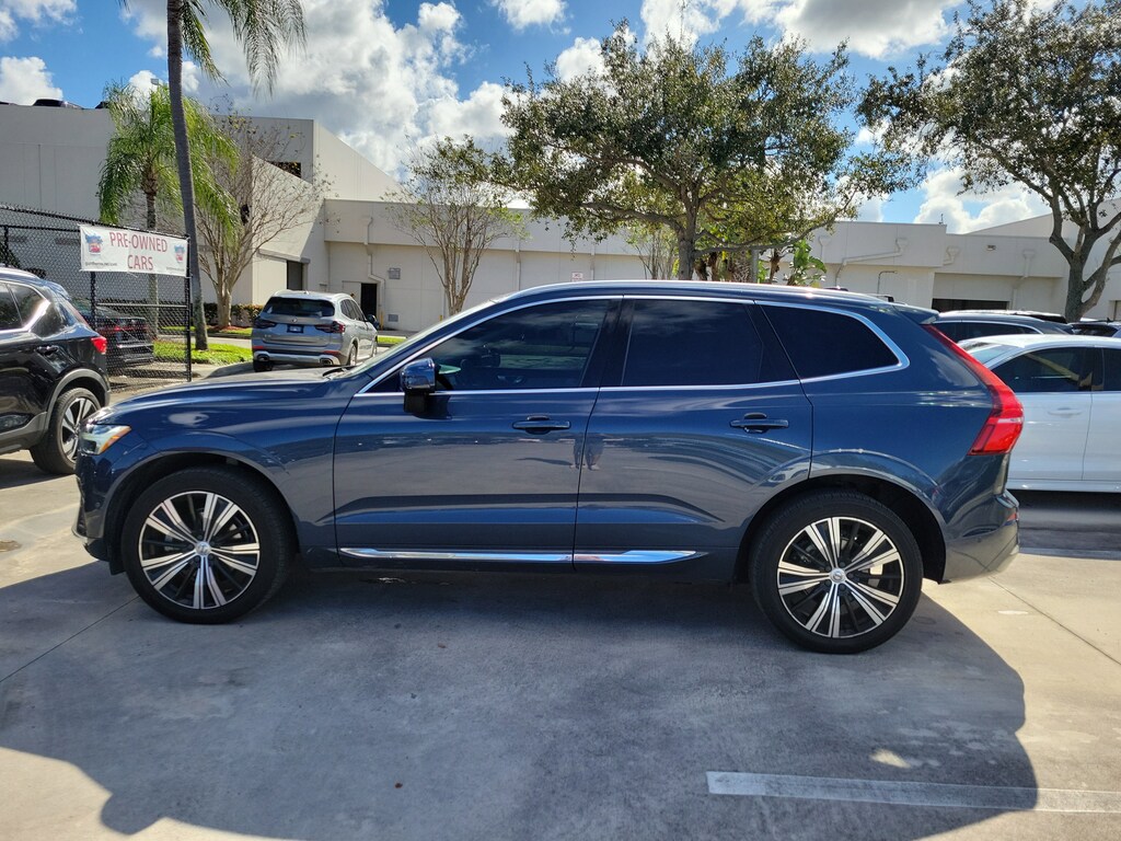CARFAX One-Owner. Denim Blue Metallic 2023 Volvo XC60 B5 Ultimate Bright Theme 2.0L I4 Turbocharged Automatic with Geartronic FWD 14 Speakers, 4-Wheel Disc Brakes, ABS brakes, Air Conditioning, Alloy wheels, AM/FM radio: SiriusXM, Anti-whiplash front head restraints, Apple CarPlay, Auto High-beam Headlights, Auto-dimming door mirrors, Auto-dimming Rear-View mirror, Automatic temperature control, Brake assist, Bumpers: body-color, Delay-off headlights, Driver door bin, Driver vanity mirror, Dual front impact airbags, Dual front side impact airbags, Electronic Stability Control, Emergency communication system: Volvo Cars App w/4 Year Subscription, Exterior Parking Camera Rear, Four wheel independent suspension, Front anti-roll bar, Front Bucket Seats, Front Center Armrest, Front dual zone A/C, Front fog lights, Front reading lights, Fully automatic headlights, Garage door transmitter: HomeLink, Genuine wood console insert, Genuine wood dashboard insert, harman/kardon® Speakers, Heads-Up Display, Heated & Ventilated Front Bucket Seats, Heated door mirrors, Heated front seats, Illuminated entry, Knee airbag, Low tire pressure warning, Luggage Cover, Memory seat, Navigation system: Sensus Navigation, Occupant sensing airbag, Outside temperature display, Overhead airbag, Panic alarm, Passenger door bin, Passenger vanity mirror, Perforated Nappa Leather Upholstery, Power door mirrors, Power driver seat, Power moonroof, Power Operated Tailgate, Power passenger seat, Power steering, Power windows, Radio data system, Radio: harman/kardon Premium Audio System, Rain sensing wipers, Rear air conditioning, Rear anti-roll bar, Rear dual zone A/C, Rear fog lights, Rear reading lights, Rear seat center armrest, Rear window defroster, Rear window wiper, Remote keyless entry, Security system, Speed control, Split folding rear seat, Spoiler, Steering wheel mounted audio controls, Tachometer, Telescoping steering wheel, Tilt steering wheel, Traction control, Trip computer, Turn signal indicator mirrors, Variably intermittent wipers, Ventilated front seats, and Wheels: 20" 5-Multi Spoke Black Diamond Cut Alloy.
