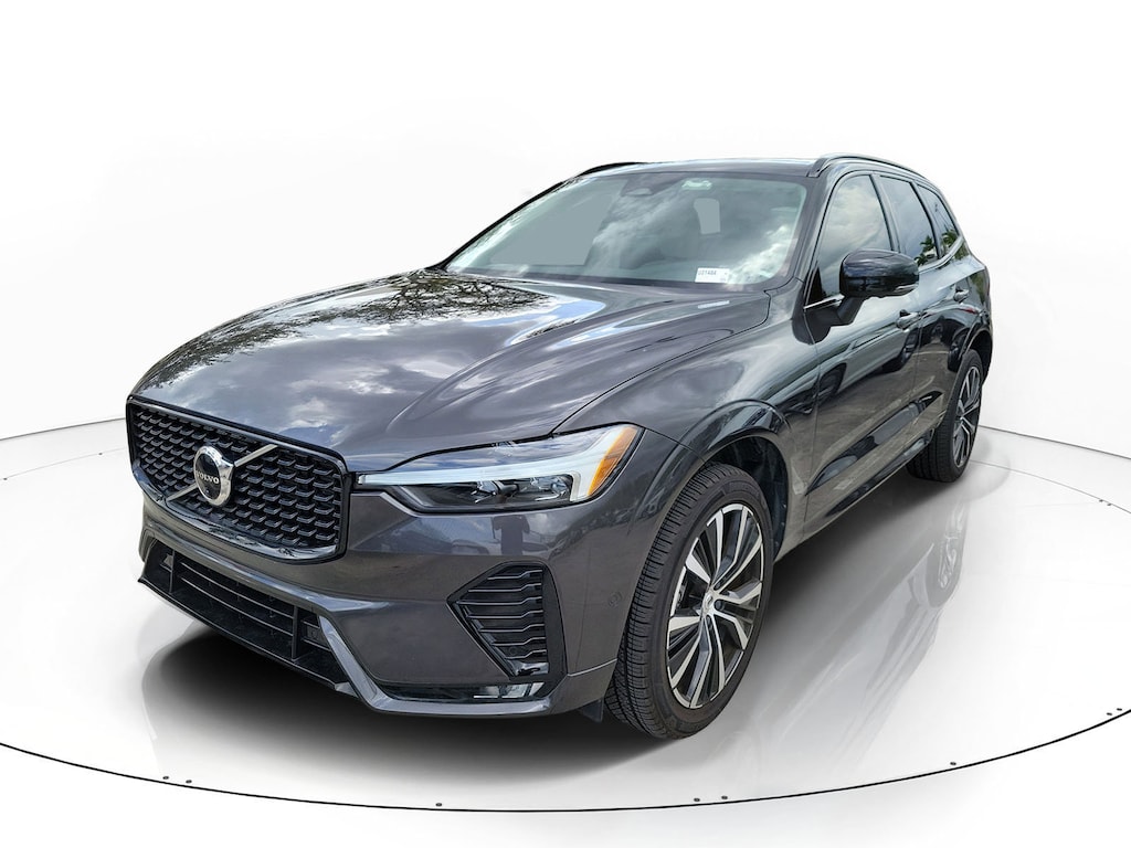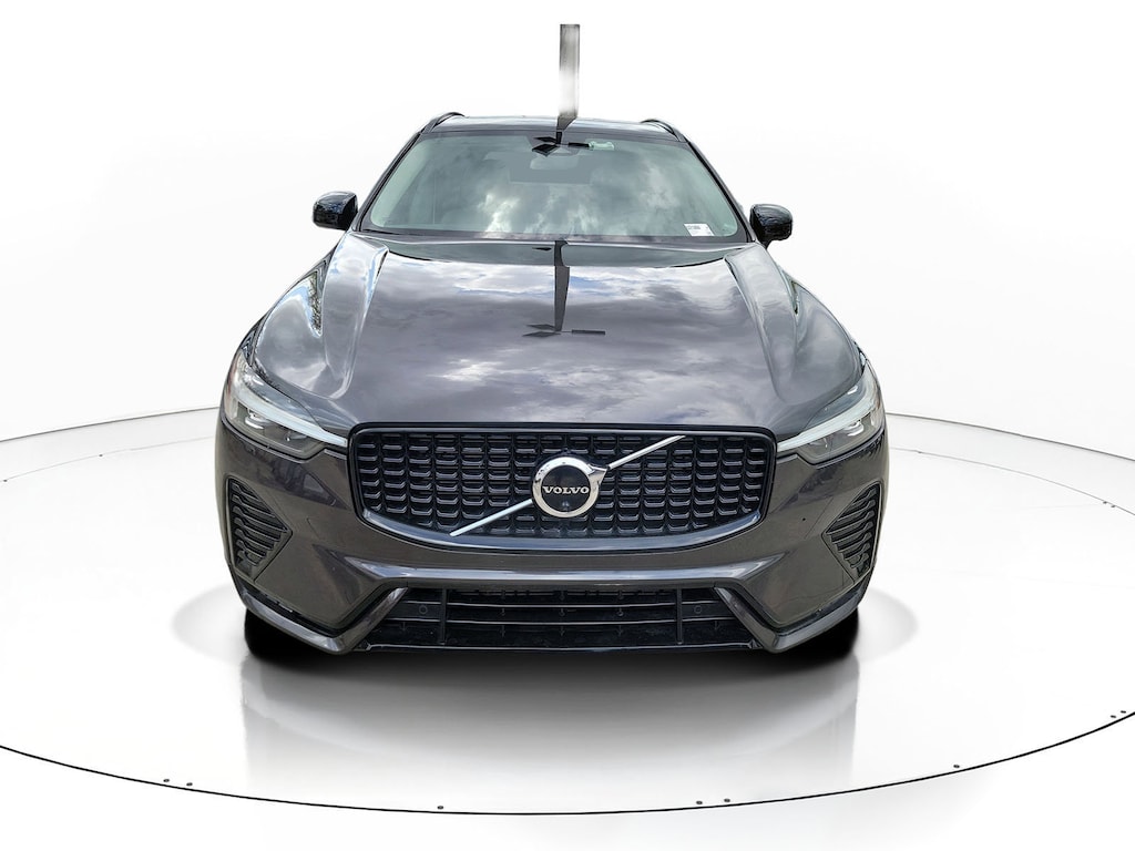 CARFAX One-Owner. Platinum Gray Metallic 2023 Volvo XC60 B5 Plus Dark Theme 2.0L I4 Turbocharged Automatic with Geartronic FWD 10 Speakers, 4-Wheel Disc Brakes, ABS brakes, Air Conditioning, Alloy wheels, AM/FM radio: SiriusXM, Anti-whiplash front head restraints, Apple CarPlay, Auto High-beam Headlights, Auto-dimming door mirrors, Auto-dimming Rear-View mirror, Automatic temperature control, Brake assist, Bumpers: body-color, Delay-off headlights, Driver door bin, Driver vanity mirror, Dual front impact airbags, Dual front side impact airbags, Electronic Stability Control, Emergency communication system: Volvo Cars App w/4 Year Subscription, Exterior Parking Camera Rear, Four wheel independent suspension, Front anti-roll bar, Front Bucket Seats, Front Center Armrest, Front dual zone A/C, Front fog lights, Front reading lights, Fully automatic headlights, Garage door transmitter: HomeLink, Genuine wood console insert, Genuine wood dashboard insert, Heated door mirrors, Illuminated entry, Knee airbag, Leather Shift Knob, Leather Upholstery, Low tire pressure warning, Memory seat, Occupant sensing airbag, Outside temperature display, Overhead airbag, Panic alarm, Passenger door bin, Passenger vanity mirror, Power door mirrors, Power driver seat, Power moonroof, Power passenger seat, Power steering, Power windows, Radio data system, Radio: High Performance Audio System, Rain sensing wipers, Rear anti-roll bar, Rear fog lights, Rear reading lights, Rear seat center armrest, Rear window defroster, Rear window wiper, Remote keyless entry, Security system, Speed control, Split folding rear seat, Spoiler, Steering wheel mounted audio controls, Tachometer, Telescoping steering wheel, Tilt steering wheel, Traction control, Trip computer, Turn signal indicator mirrors, Variably intermittent wipers, and Wheels: 19" 5-V Spoke Black Diamond Cut Alloy.
