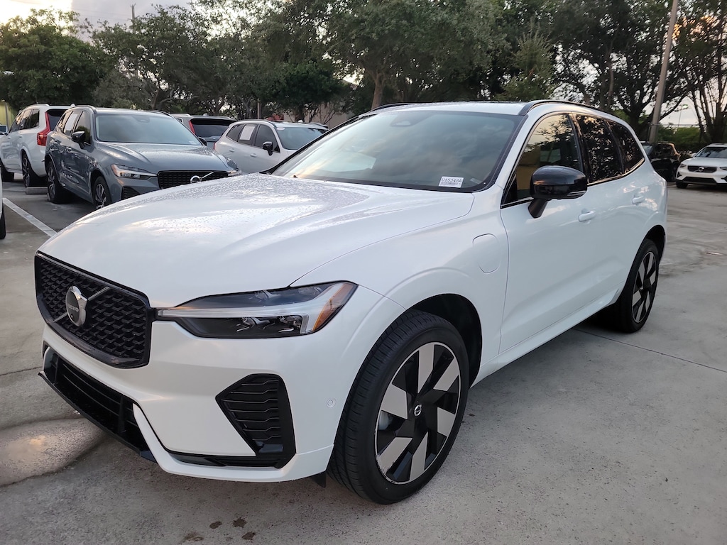 CARFAX One-Owner. Crystal White 2023 Volvo XC60 Recharge Plug-In Hybrid Ultimate 2.0L I4 Automatic with Geartronic AWD Protection Package Premier (Bumper Cover, Cargo Tray, First Aid Kit, Rubber Floor Mats, and Wheel Locks), 14 Speakers, 4-Corner Air Suspension, 4-Wheel Disc Brakes, ABS brakes, Air Conditioning, Alloy wheels, AM/FM radio: SiriusXM, Anti-whiplash front head restraints, Apple CarPlay, Auto High-beam Headlights, Auto-dimming door mirrors, Auto-dimming Rear-View mirror, Automatic temperature control, Brake assist, Bumpers: body-color, Delay-off headlights, Driver door bin, Driver vanity mirror, Dual front impact airbags, Dual front side impact airbags, Electronic Stability Control, Emergency communication system: Volvo Cars App w/4 Year Subscription, Exterior Parking Camera Rear, Four wheel independent suspension, Front anti-roll bar, Front Bucket Seats, Front Center Armrest, Front dual zone A/C, Front reading lights, Fully automatic headlights, Garage door transmitter: HomeLink, Genuine wood console insert, Genuine wood dashboard insert, harman/kardon® Speakers, Heads-Up Display, Heated & Ventilated Front Bucket Seats, Heated door mirrors, Heated front seats, Illuminated entry, Knee airbag, Low tire pressure warning, Luggage Cover, Memory seat, Navigation System, Occupant sensing airbag, Outside temperature display, Overhead airbag, Panic alarm, Passenger door bin, Passenger vanity mirror, Perforated Nappa Leather Upholstery, Power door mirrors, Power driver seat, Power moonroof, Power Operated Tailgate, Power passenger seat, Power steering, Power windows, Radio data system, Radio: Bowers & Wilkins Premium Sound System, Radio: harman/kardon Premium Audio System, Rain sensing wipers, Rear anti-roll bar, Rear fog lights, Rear reading lights, Rear seat center armrest, Rear window defroster, Rear window wiper, Remote keyless entry, Security system, Speed control, Split folding rear seat, Spoiler, Steering wheel mounted audio controls, Tachometer, Telescoping steering wheel, Tilt steering wheel, Traction control, Trip computer, Turn signal indicator mirrors, Variably intermittent wipers, Ventilated front seats, Wheels: 20" 5-Y Spoke Black Diamond Cut Alloy, and Wheels: 20" 6-Spoke Black Diamond Cut Alloy.