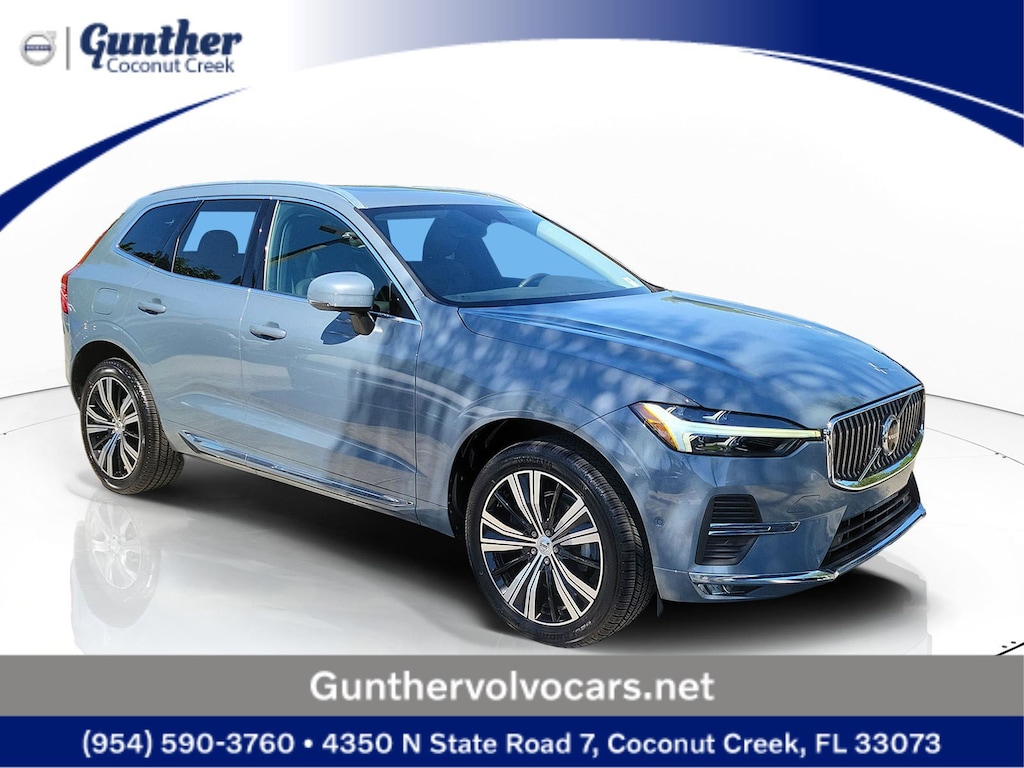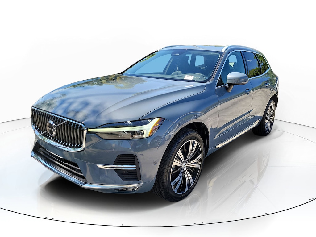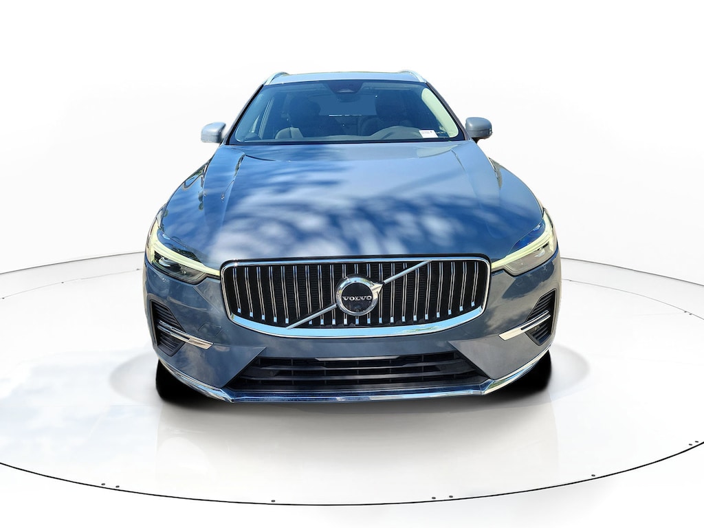 CARFAX One-Owner. Gray Metallic 2023 Volvo XC60 B5 Plus Bright Theme 2.0L I4 Turbocharged Automatic with Geartronic AWD 10 Speakers, 4-Wheel Disc Brakes, ABS brakes, Air Conditioning, Air Purifier, Alloy wheels, AM/FM radio: SiriusXM, Anti-whiplash front head restraints, Apple CarPlay, Auto High-beam Headlights, Auto-dimming door mirrors, Auto-dimming Rear-View mirror, Automatic temperature control, Brake assist, Bumpers: body-color, Delay-off headlights, Driver door bin, Driver vanity mirror, Dual front impact airbags, Dual front side impact airbags, Electronic Stability Control, Emergency communication system: Volvo Cars App w/4 Year Subscription, Exterior Parking Camera Rear, Four wheel independent suspension, Front anti-roll bar, Front Bucket Seats, Front Center Armrest, Front dual zone A/C, Front fog lights, Front reading lights, Fully automatic headlights, Garage door transmitter: HomeLink, Genuine wood console insert, Genuine wood dashboard insert, Heated door mirrors, Heated Front Bucket Seats, Heated front seats, Illuminated entry, Knee airbag, Leather Shift Knob, Leather Upholstery, Low tire pressure warning, Luggage Cover, Memory seat, Occupant sensing airbag, Outside temperature display, Overhead airbag, Panic alarm, Passenger door bin, Passenger vanity mirror, Power door mirrors, Power driver seat, Power moonroof, Power Operated Tailgate, Power passenger seat, Power steering, Power windows, Radio data system, Radio: High Performance Audio System, Rain sensing wipers, Rear anti-roll bar, Rear fog lights, Rear reading lights, Rear seat center armrest, Rear window defroster, Rear window wiper, Remote keyless entry, Security system, Speed control, Split folding rear seat, Spoiler, Steering wheel mounted audio controls, Tachometer, Telescoping steering wheel, Tilt steering wheel, Traction control, Trip computer, Turn signal indicator mirrors, Variably intermittent wipers, Wheels: 19" 5-V Spoke Black Diamond Cut Alloy, and Wheels: 20" 5-Multi Spoke Black Diamond Cut Alloy.
